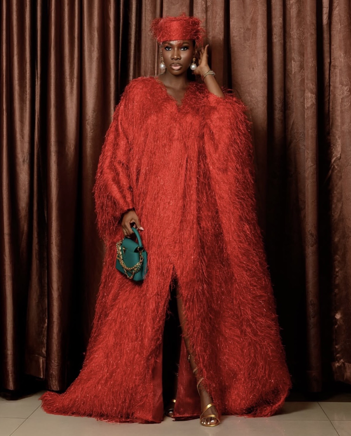 Mimi Yina delivered one of the most impactful moments of the week in a striking red ensemble that turned heads. Dense fringes added volume and movement, bringing the outfit to life with every step.