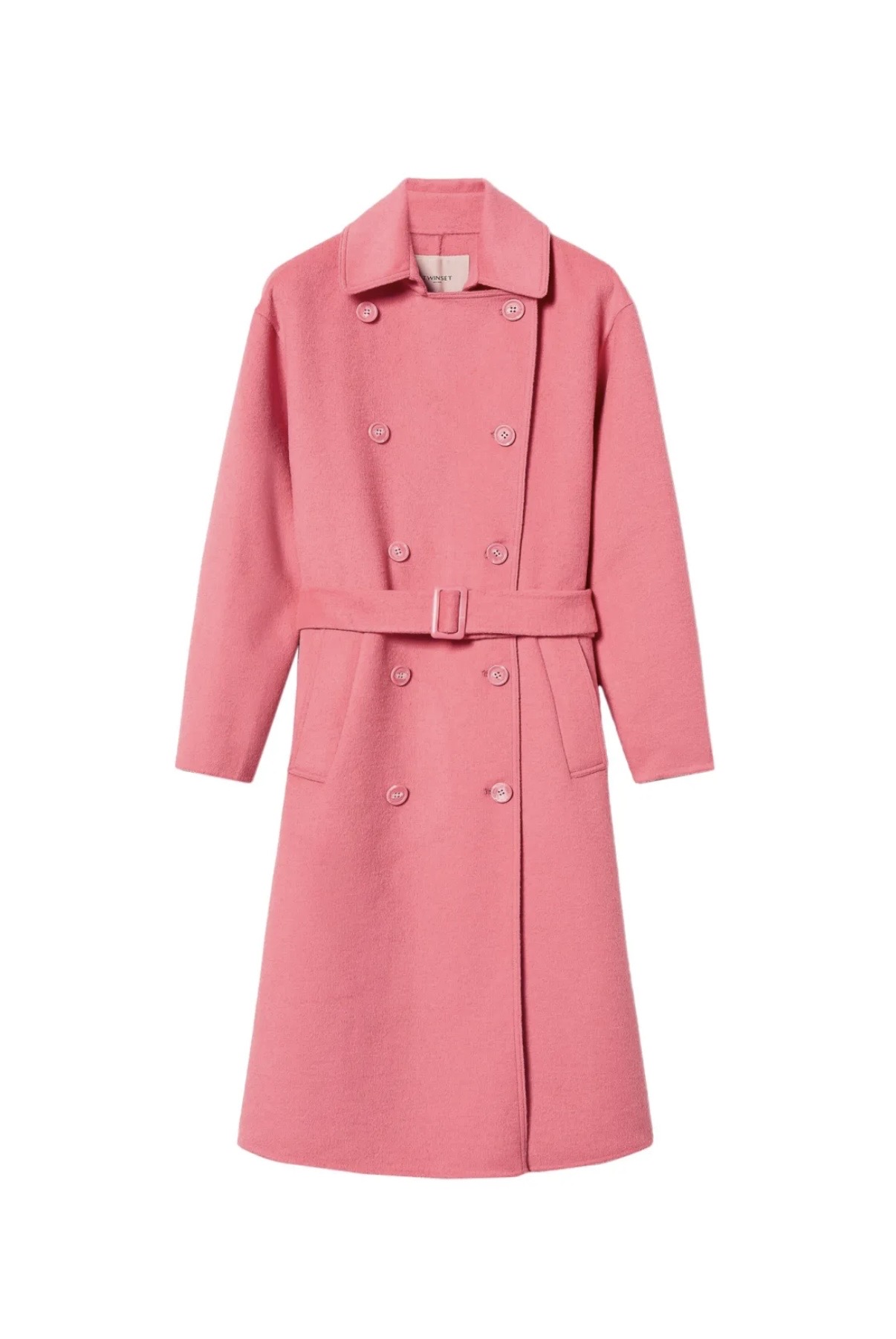 Soft tailoring gives this trench coat a more romantic look. The pink hue introduces a soft contrast to the typical neutral trench coat palette, while the double-breasted closure and waistband maintain the classic proportions that make the silhouette so enduring.